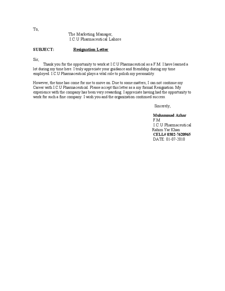 Include contact information and date. Resignation letter sample 1 (career shift) dear mr./mrs. Sample resignation letter medical representative 3.